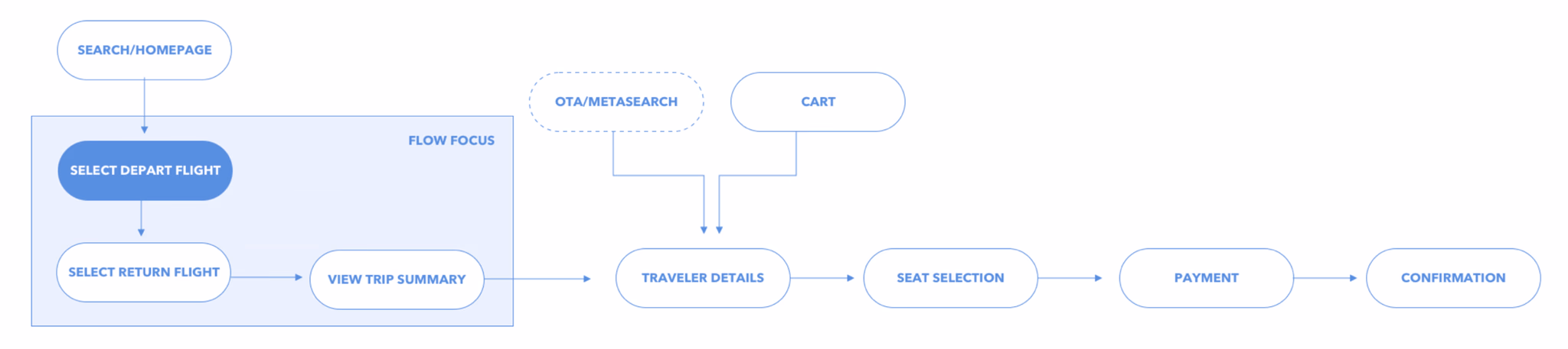 Users could enter through the homepage or enter through an OTA (online travel agency, Kayak, Google Flights).