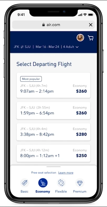 - ·Can users easily distinguish between fare classes (Blue Basic, Blue, Blue Extra, Mint)?